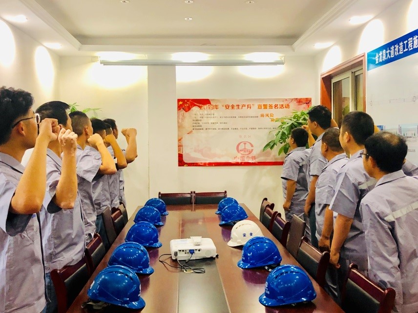 荊門項目部:在工地現場和項目上統一張貼安全生產倡議書,開展安全生產倡議。組織學習黨中央、國務院關于安全生產的責任部署、安全生產法律法規、規章制度、知識技能和股份公司關于安全生產“管”“監”責任落實的安排部署等文件精神,并進行集體宣誓和簽名。項目部以公司安全生產責任“落實年”為抓手,借助“安全生產月”活動為契機,強化安全管理體系各系統責任落實、恪盡職守、扎實工作、以實際行動,防風險、除隱患、遏事故,為建國70周年創造良好的安全生產環境。(張 寧)