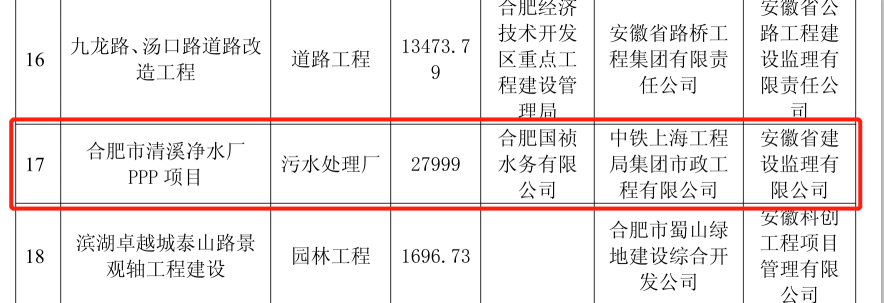 合肥清溪凈水廠PPP項目榮獲合肥市市政工程“廬州杯”獎