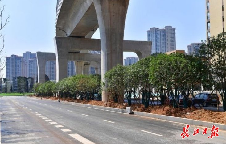 長江日報記者在施工現場見到,白沙五路車站兩側道路刷黑全面完成,道路分隔明晰。
