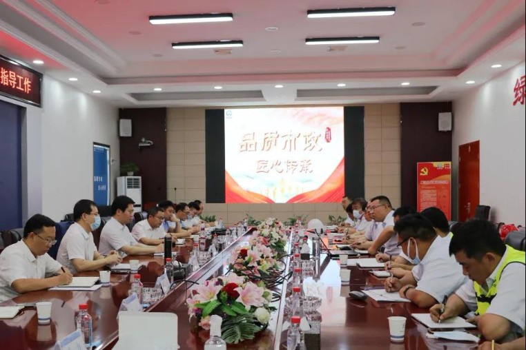 隨后,耿樹標(biāo)一行來到黃家湖污水處理廠項(xiàng)目,觀摩了現(xiàn)場工程推進(jìn)情況,聽取了項(xiàng)目負(fù)責(zé)人關(guān)于項(xiàng)目重難點(diǎn)等情況的匯報(bào),并在項(xiàng)目部會議室開展了座談交流。