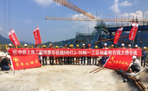 6月20日,由中鐵上海工程局承建的蒙華鐵路楊家?guī)X大橋右線最長連續(xù)梁順利合龍,標志著蒙華鐵路楊家?guī)X大橋右線合攏段澆筑完成。
